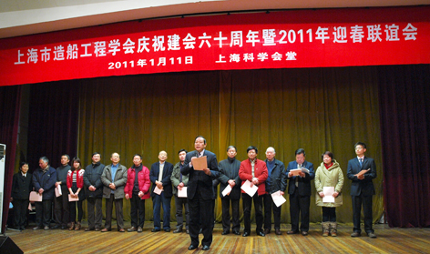 2011年1月11日,上海市造船工程學會迎春聯(lián)誼會在科學會堂隆重舉行,來自各單位的250于位會員代表濟濟一堂。